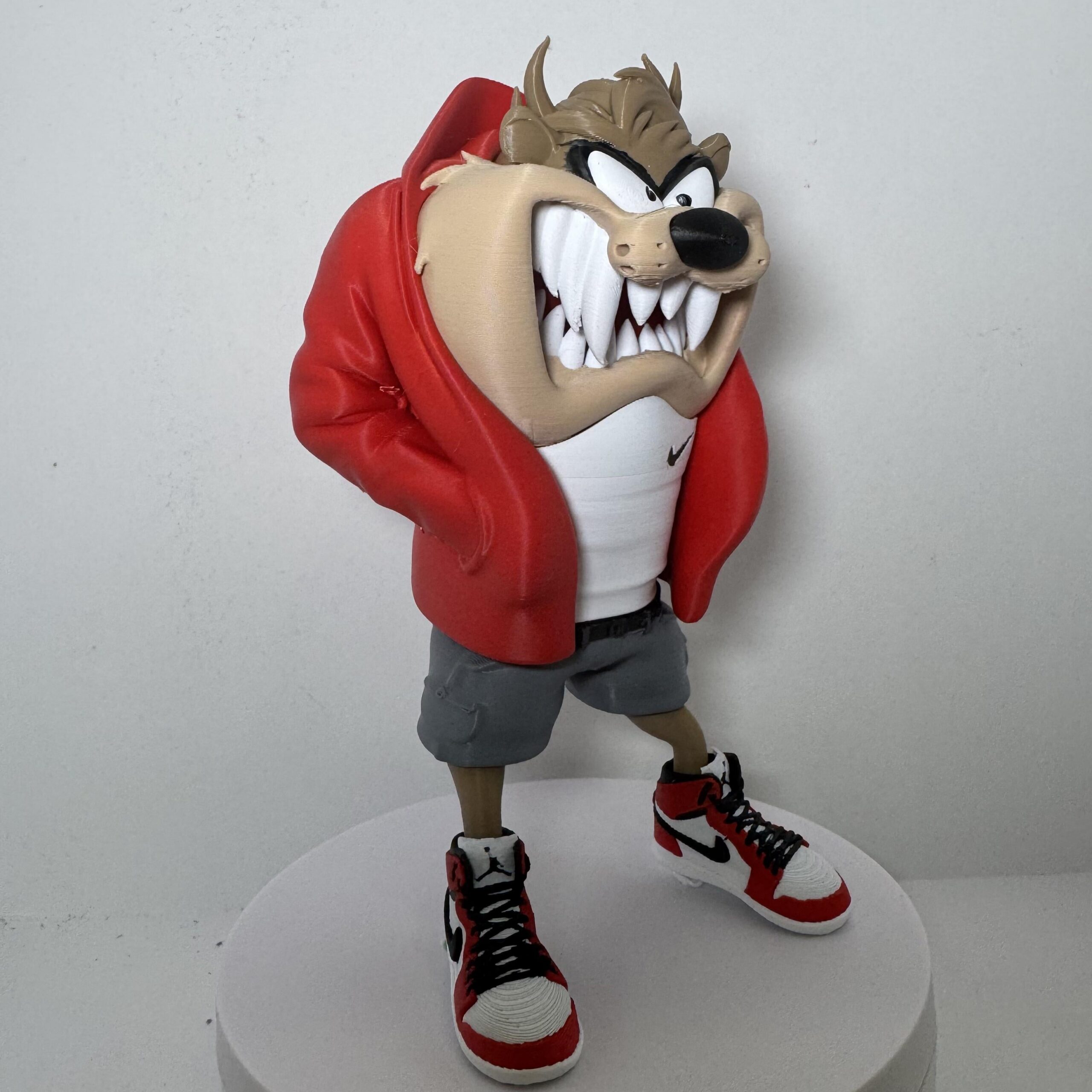 Com jaqueta larga, bermudão, camiseta branca e aquele tênis clássico que todo maloqueiro raiz respeita, o Taz chega com a cara de poucos amigos… do jeitinho que a quebrada gosta. 😈
